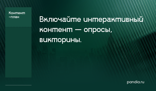 Для привлечения аудитории важным инструментом являются различные интерактивные элементы: конкурсы, акции, онлайн-трансляции, живые видеосюжеты, которые могут быть связаны с мероприятием до и во время его проведения. Это помогает создать эмоциональную вовлеченность и усилить связь с целевой аудиторией. -