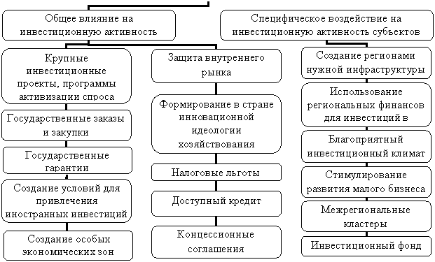 Рис 2. Система воздействия государства на инвестиционную активность субъектов экономики