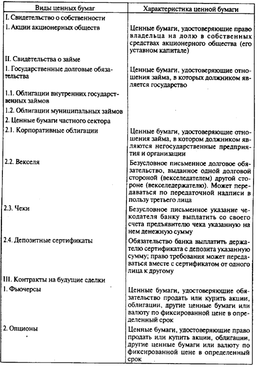 Таблица 24.1 Виды ценных бумаг, обращающихся на российском фондовом рынке