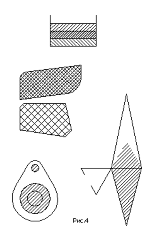Используя команду Штриховка (Hatch) заштриховать объекты чертежа в соответствии с рис.4.