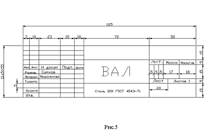 На новом чертеже с границами 297х210 начертить чертежный штамп без надписей в соответствии с заданными размерами. Сохранить чертеж под именем Htamp.