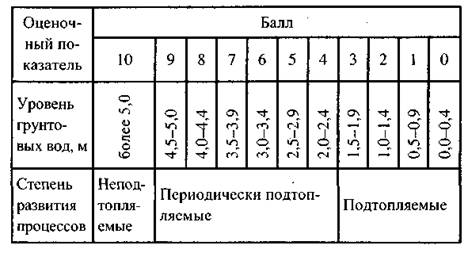 Например, если для определенной территории города характерно подтопление, то оценочная шкала имеет следующий вид (табл. 2):