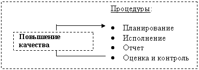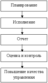 Управление каждым из этих элементов представляет собой несколько последовательных стадий, таких как планирование, исполнение, отчет, оценка и контроль, а также совершенствование качества управления по результатам оценки.