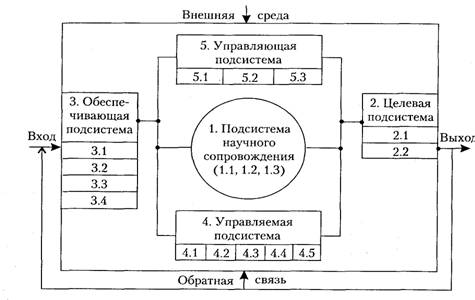 Подсистема научного сопровождения состоит из следующих компонентов: экономические законы и законы организации; научные подходы к инновационному менеджменту; функции и методы менеджмента. К научным подходам относятся системный, маркетинговый, функциональный.