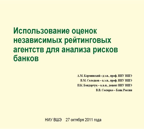Использование оценок независимых рейтинговых агентств для анализа рисков банков.