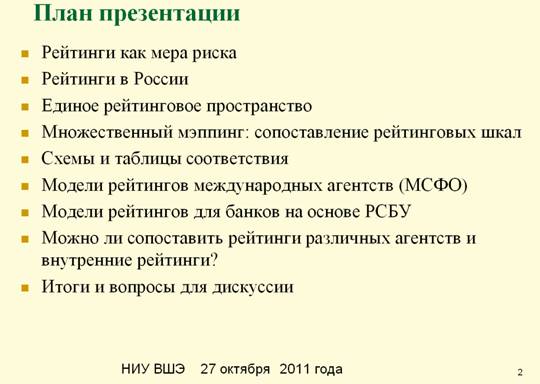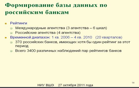 · Методология построения эконометрической модели рейтингов для российских и международных рейтинговых агентств.