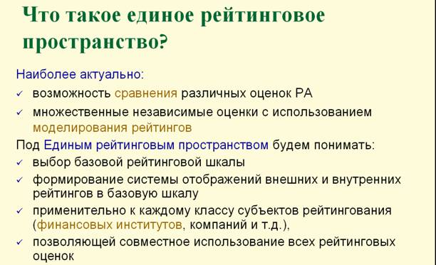 Далее рассмотрим то, что мы понимаем под Единым рейтинговым пространством. Слайд 8.