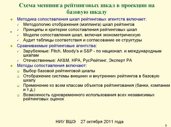 · Методы для сравнения рейтинговых шкал различных агентств.