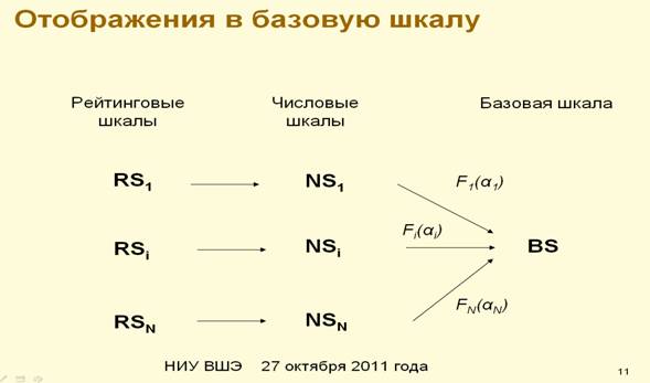 Значение рейтинга в базовой шкале определяется функцией Fi (Fi1 → Rбаз).