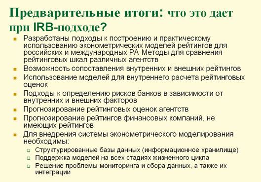 Рассмотрим предварительные итоги, и что это дает при IRB-подходе (слайд 17):