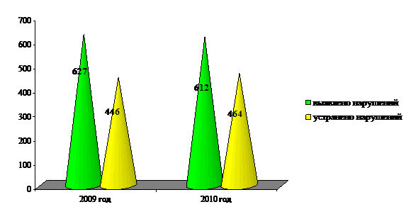 Устранено нарушений - 153, выполнено предписаний – предписания 2009 г.). Переходящих на 2011г. нарушений – 88, предписаний - 93.