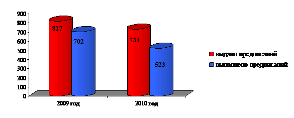 Рис. 8.3. Количество выданных и выполненных предписаний за 2009 – 2010 гг.(ед.)