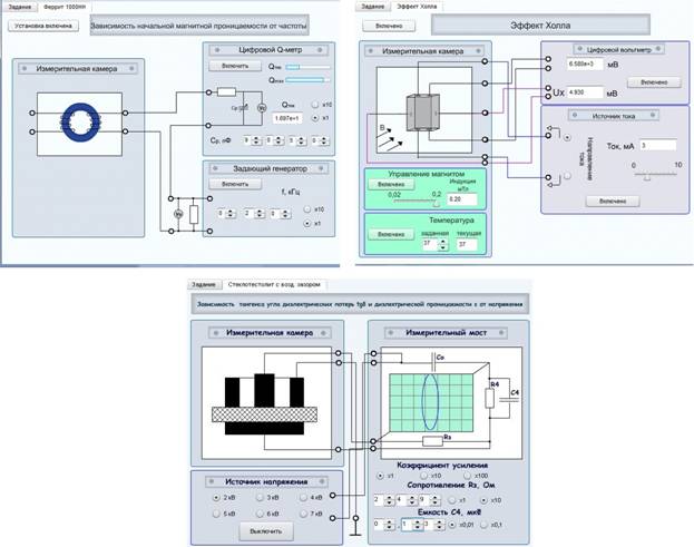 Вышеперечисленные лабораторные работы: «Поляризация и потери в твердых диэлектриках на частоте 50 Гц», «Исследование магнитомягких материалов», «Изучение эффекта Холла в полупроводниковых материалах» дополняют существующий виртуальный лабораторный практикум по курсам «Электротехническое материаловедение» и «Физика диэлектриков».