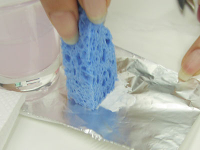 Шаг 4 Обмакните влажную губку в краску на листе бумаги или фольги.