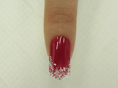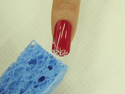 Шаг 7 Теперь лекгими, но уверенными движениями наносите губкой краску на ноготь. Очень важно не давить сильно, чтобы на ногте пропечатывался лишь контур фактуры губки, а не полностью красился ноготь.