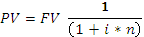 1 начисления при целом числе лет n | FV= PV (1+i*n) | FV = |