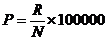 Грубый интенсивный показатель заболеваемости на 100 тыс. (в ‰oo) населения (P) рассчитывался по формуле: