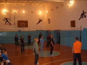от учителей ) обменялись рукопожатиями, и началась игра. Поначалу команда учеников вела и выиграла первую партию. Но во второй партии учителя разыгрались не на шутку и выиграли со счетом 1:1, а в третьей партии в 1 очко команда учеников проиграла. О проигрыше не переживали, всем было весело!