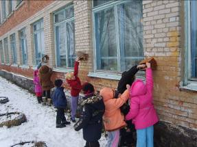 Ребята начальных классов вешают до сих пор кормушки, которые сделали в далеком детстве ребята восьмого класса. Выражаем благодарность тем, кто сделал кормушки. Делайте больше кормушек! Накормим птиц!