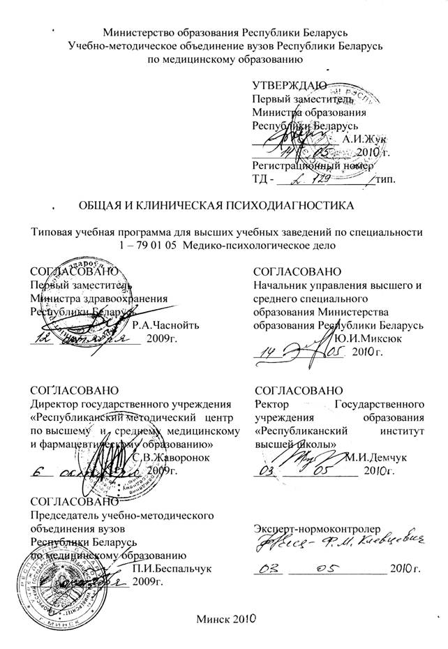 образовательным стандартом по специальности 1Медико-психологическое дело (ОСРБ 1 –, утверждённым постановлением Министерства образования Республики Беларусь № 40 от 01.01.2001 г.;