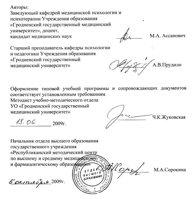 Секцией по специальности 1Медико-психологическое дело Учебно-методического объединения вузов Республики Беларусь по медицинскому образованию (протокол №2 от 01.01.2001г.)