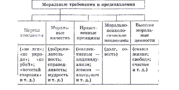 С точки зрения структуры морали, моральные требования и представления принимают самые разнообразные формы по отношению к человеку, оказывая регулятивное воздействие на него.