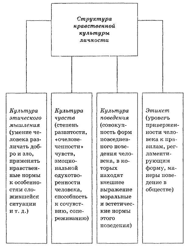 Таким образом, нравственная культура личности — это знание общих моральных принципов, способность «переплавить» их в глубокие прочувственные убеждения, умение применять нормы поведения, находить адекватную им форму поступка.