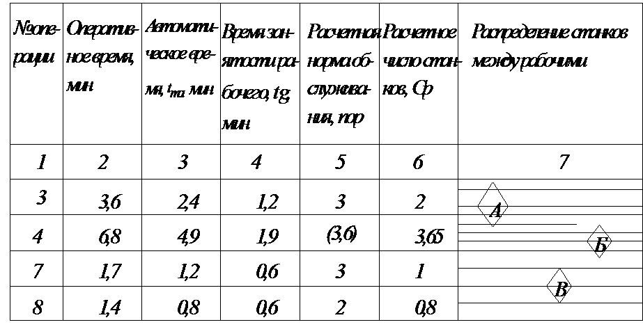 Коэффициент многостаночного обслуживания по линии в целом, определяется по формуле
