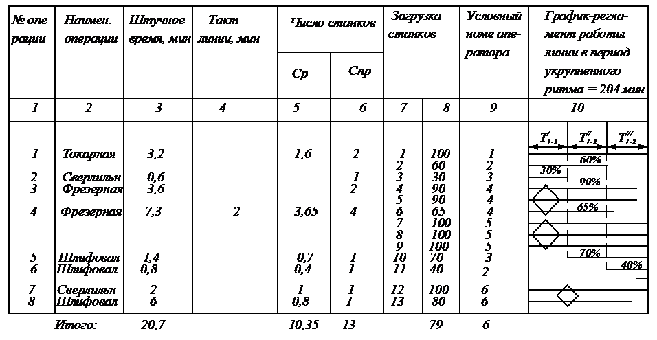 прерывно-поточной линии, мин/дет; i – порядковый номер операции.