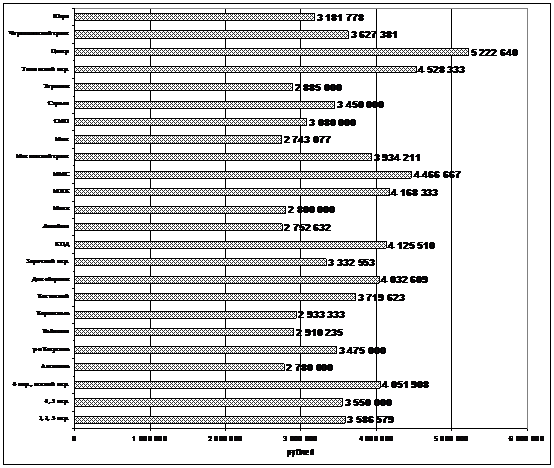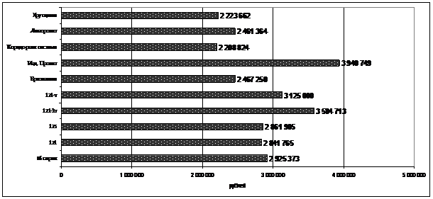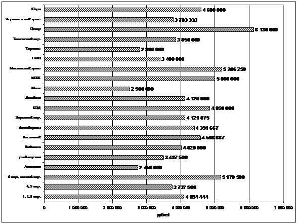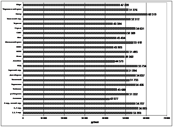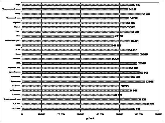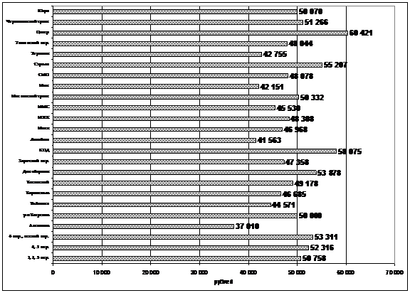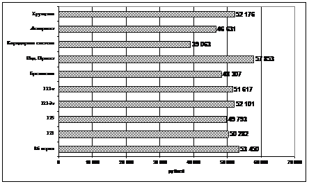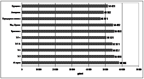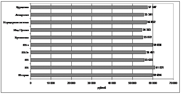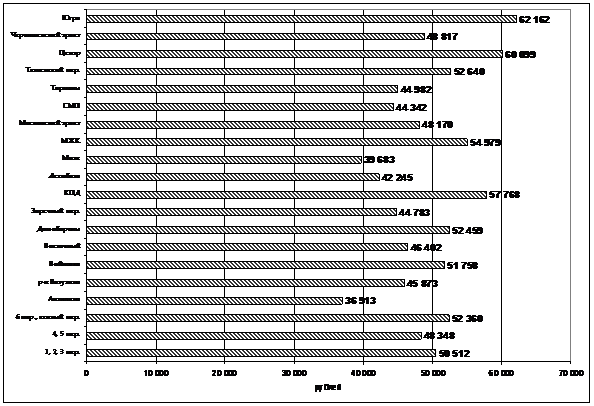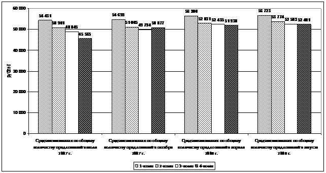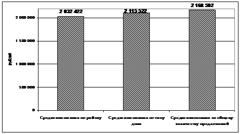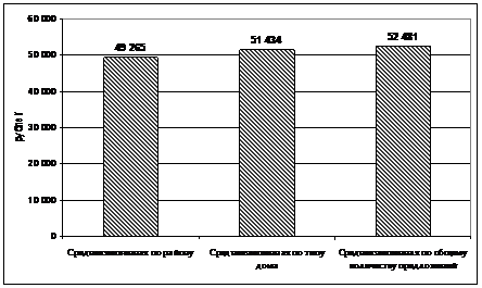 На основании проведенного анализа можно выделить один район с высокой стоимостью – Центр (аналогично октябрь 2007 г., а также апрель 2008 г.), здесь стоимость 1 кв. м. жилья составляетруб. Цены на остальные районы сосредоточены в диапазоне от 56 000 до 42 000 руб. за кв. м., самая низкая стоимость наблюдается в Антипино и достигаетруб. за кв. м. (тогда как в апреле 2008 г. самая низкая стоимость наблюдалась в Матмассах и достигала 39 242 руб. за кв. м.)