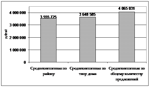 В процессе определения средневзвешенной цены за 1 кв. м. в разрезе по районам были получены следующие данные: