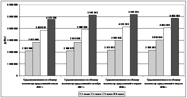 Таким образом, средневзвешенная стоимость одного квадратного метра квартир в Тюмени в июле, октябре 2007 года, апреле и августе 2008 г. составляет: