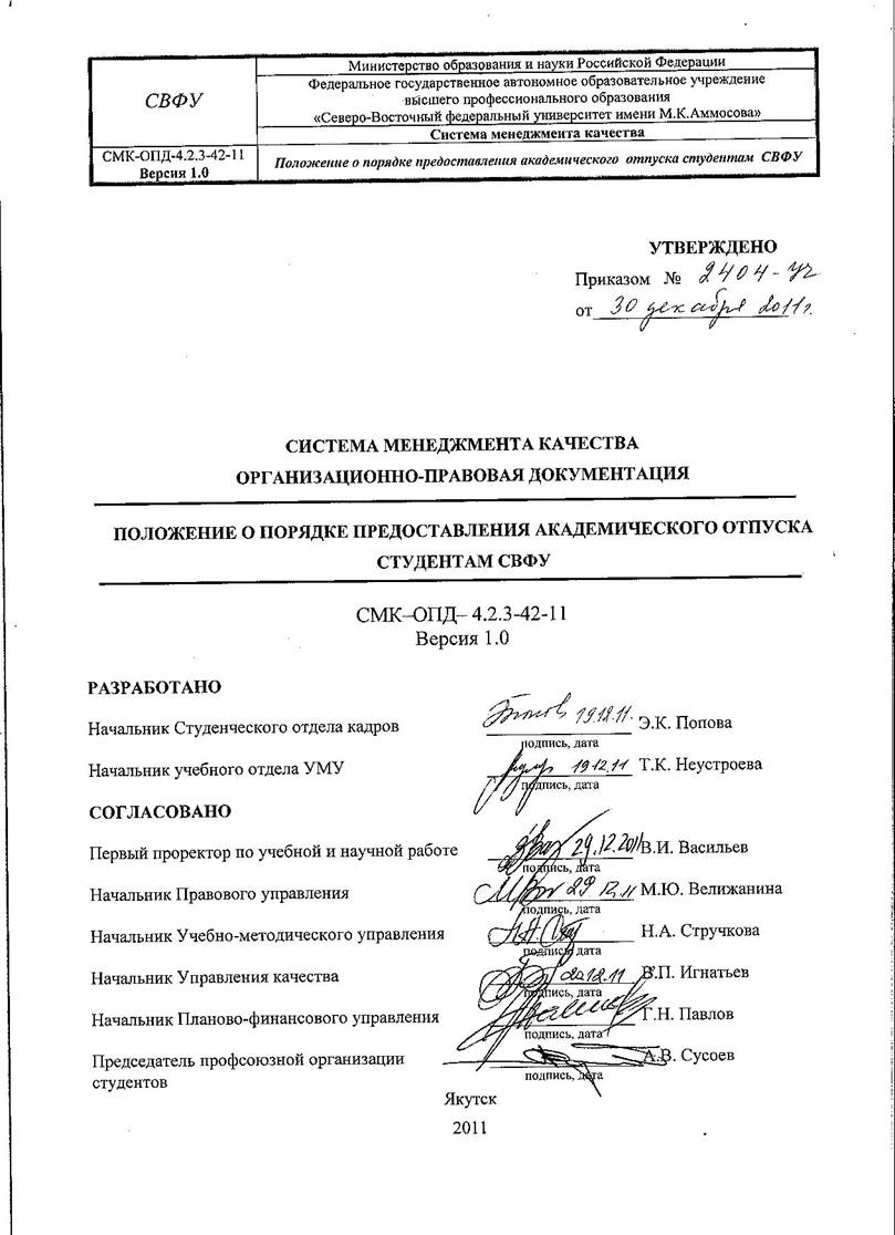 в СМК - Положение о порядке предоставления академического отпуска