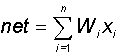 В блоке суммирования происходит накопление общего входного сигнала (обычно обозначаемого символом net), равного взвешенной сумме входов: