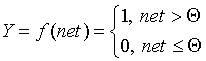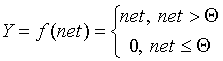 В модели Маккалока и Питтса отсутствуют временные задержки входных сигналов, поэтому значение net определяет полное внешненее возбуждение, воспринятое нейроном. Отклик нейрон далее описывается по принципу "все или ничего", т. е. переменная подвергается нелинейному пороговому преобразованию, при котором выход (состояние активации нейрона) Y устанавливается равным единице, если net > Q, и Y=0 в обратном случае. Значение порога Q (часто полагаемое равным нулю) также хранится в локальной памяти.