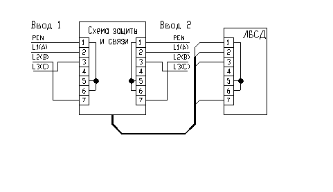 5.2 Монтаж ЛБСД производится в ТП, путем крепления при помощи дюбелей и саморезов диаметром 8 мм, через крепежные отверстия его корпуса к стене. ЛБСД подключается к двум фазам через устройство связи, смонтированное в щите «GW40-104», в соответствии со схемой подключения ЛБСД к питающей магистрали (рис.3) и схемами распределительной сети.