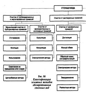 На рис. 50 приведена классификация основных методов очистки сточных вод, разработанная с учетом фазово-дисперсной характеристики.