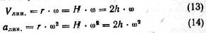 Линейная скорость точки Vлин равна угловой скорости ω, умноженной на радиус вращения