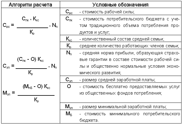 Методика определения стоимости рабочей силы и производных от нее показателей заработной платы