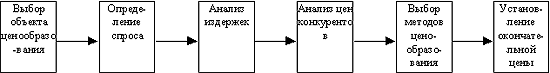 Ценообразование - сложный и многоэтапный процесс, который можно представить в виде шести последовательно выполняемых этапах (рис.18.).
