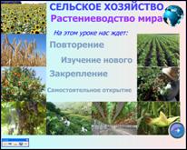 Представленный урок запланирован как урок изучения и первичного закрепления новых знаний по теме «Сельское хозяйство мира. Растениеводство».