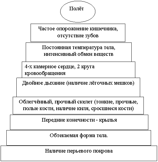 5 | Закрепление полученных знаний. Заполнить схему: Черты приспособления птиц к полёту. Расположите их по мере значимости.