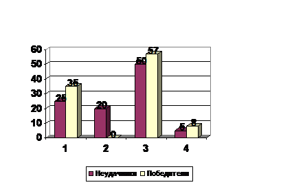 Рис 1. Использование различных типов защитных механизмов «Победителями» и «Неудачниками»