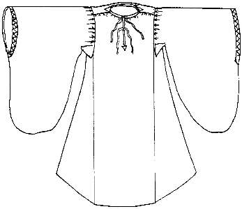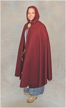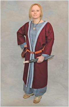 На видном месте нож Сикс (Seax). Seax является признаком свободного человека. Ярко красный плащ накинут на платье из голубого льна киртл (kyrtle). Платье может быть украшено вышивкой.