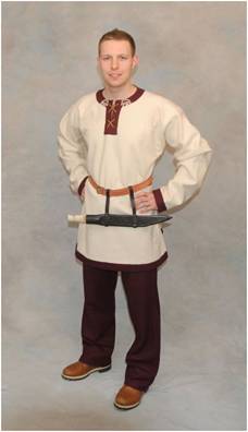 Мужчина носит нож Сикс (Seax) спереди, чтобы обозначить, что он - свободный англичанин. Его брюки и блуза для холодной погоды сделаны из шерсти. Летом одежда из льна. Обеспеченные люди имеют плащ из шерсти.
