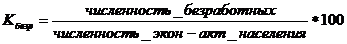 ¾ уровень безработицы (МОТ) – удельный вес численности безработных в численности экономически активного населения: