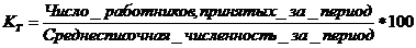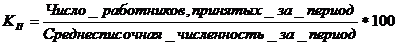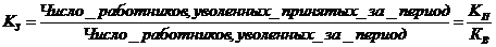 коэффициент замещения рабочей силы (отношение числа принятых работников к числу уволенных за период либо как соотношение между коэффициентами оборота по приему и по выбытию):