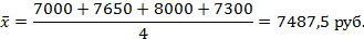 Заработная плата за январь у 4 рабочих одного цеха составила: 7000, 7650, 8000, 7300 руб. Средняя заработная плата составит: