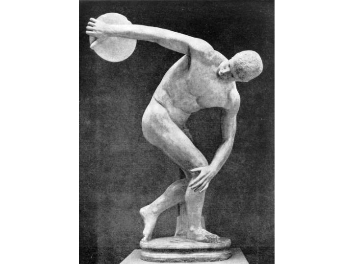 | .Мирон. Дискобол. Мраморная римская копия с бронзового оригинала. Середина V в. до н. э. Рим, Национальный музей. |