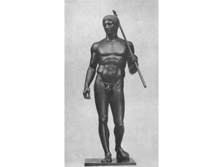 | Поликлет из Пелопоннеса. Дорифор. Мраморная римская копия с бронзового оригинала. Около 440 г. до н. э. Неаполь, Национальный музей. |